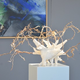 „Leichtigkeit und Transparenz“ – das Hauptthema des Bildhauers Wilhelm Terhorst. Inspiriert durch das feine Geflecht von Insektenflügeln fertigt er auf unkonventionelle Art und Weise, ohne Zeichnungen, Modell oder Schablone, intuitiv, rein aus dem Gefühl seine Objekte. Seine Materialien sind Marmor, Kalk- und Sandgesteine aber auch Hölzer und Rinden. Nicht der Quader ist Ausgang seiner filigranen Skulpturen sondern Steinfragmente, deren Formen und Oberflächen ihn anziehen.