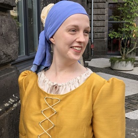 Die Schauspielerin Christina Wouters liest und stellt das Mädchen mit dem Perlenohrring in einer kleinen szenischen Lesung dar. Die Zuschauer:innen können in die Gedankenwelt des berühmten Gemäldes eintauchen und auf diese Weise lebendige Kunst erleben.